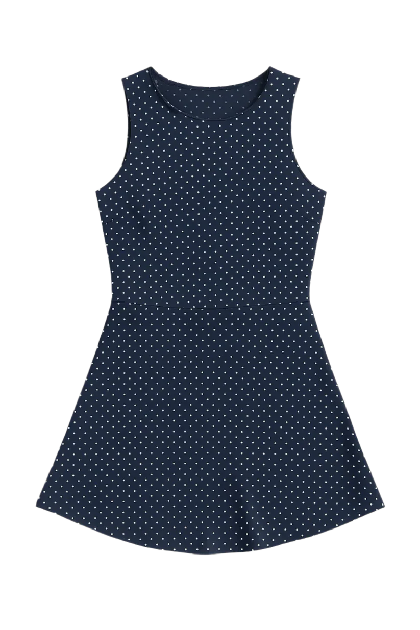 Navy Polka Dot Sleeveless Mini Dress